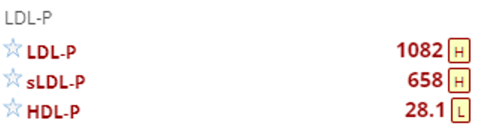 This additional panel is what we call an NMR lipid particle count. The results are a little more detailed, but to save you a total geek out session, I just used this part to make my point, and yes, it IS from the same person and even the same blood sample on the same day and time!